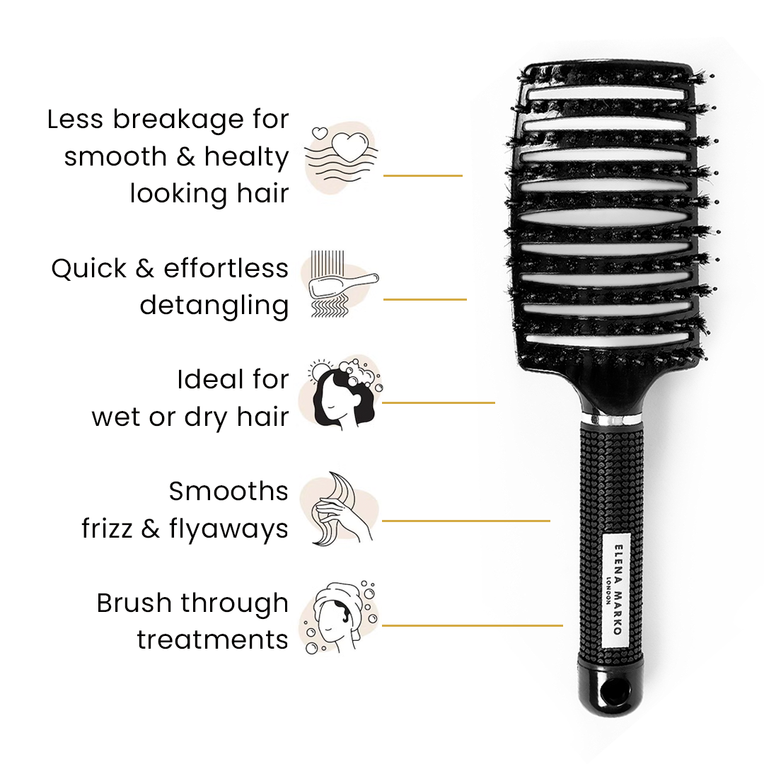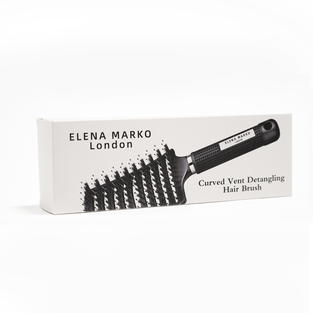 Elevate your daily hair care routine with the Elena Marko Curved Vent Detangling Hair Brush. Expertly designed by Elena Marko, a London-based stylist with over 20 years of salon floor experience, this brush combines professional-grade performance with a sleek, ergonomic finish.